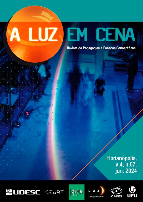 Vol. 3 No. 06 (2023)Em seu sexto número, a revista A Luz em Cena propõe reflexões a partir das relações da cenografia e seus elementos que compões o espaço artístico e espaços ligados à arquitetura ou desfiles carnavalescos. Esta temática busca reunir artigos, traduções, entrevistas, relatos, memoriais, resenhas e debates que proponham interações sobre histórias e o aprendizado, as tecnologias e seus meios e as inter-relações entre práticas e pedagogias, que desenvolveram ou continuam transmitindo o conhecimento e o aprendizado nas áreas de composições da cenografia, da arquitetura, da alegoria e adereços ou demais elementos que ocupa o espaço da cena.