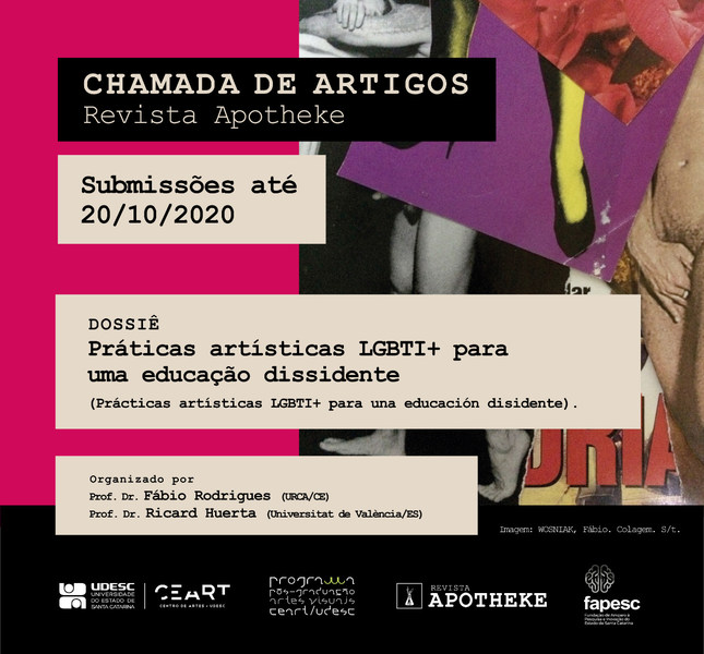 10-01-2024A Revista Apotheke convida professores/as, artistas, pesquisadores/as, acadêmicos/as e profissionais dedicados às artes visuais para se engajarem ativamente na elaboração dos três volumes que comporão o ano de 2024. Durante este período, nossa revista se empenhará em uma investigação minuciosa do tema central "Entre abordagens, métodos e metodologias", buscando dialogar sobre as múltiplas facetas que permeiam o vasto campo das Artes Visuais em articulação com a Arte/Educação.