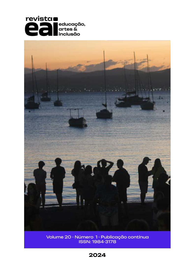 A Revista Educação Artes e Inclusão é um periódico que segue a Política de Acesso Livre. Os artigos publicados pela revista são de uso gratuito, destinados a aplicações educacionais e não comerciais. Os artigos cujos autores são identificados representam a expressão do ponto de vista de seus autores e não a posição oficial da Revista Educação, Artes e Inclusão [REAI].