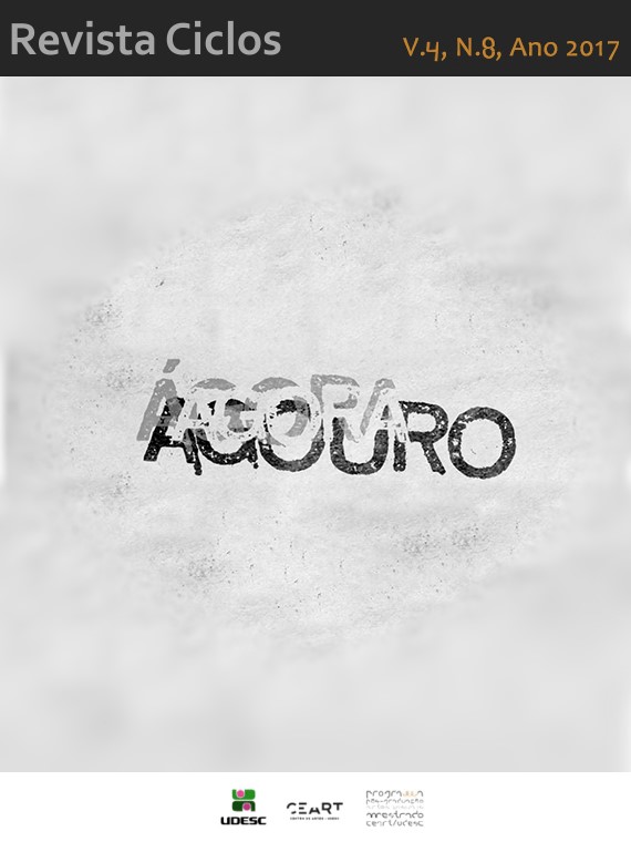 Nesta edição de número 8 da Revista Ciclos será possível contemplar uma parte dos artigos e Ensaios Visuais vinculados ao 12º Ciclo de Investigações - Agouro, Ágora, Agora, evento realizado em setembro de 2017 pelo PPGAV, que foram avaliados e selecionados para esta publicação online pelo nosso comitê científico, composto por professores da UDESC e de diversas instituições do país, assim como por doutorandos do PPGAV/UDESC.