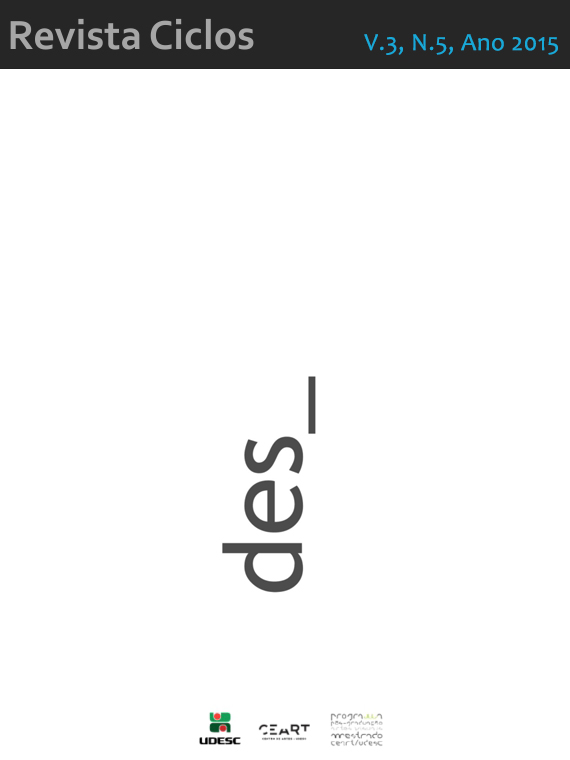 Nesta edição de número 5 da Revista Ciclos será possível contemplar a primeira parte dos artigos vinculados ao XI Ciclo de Investigações – des_, evento realizado em agosto de 2016 pelos discentes do PPGAV. Maiores informações sobre o evento podem ser encontradas no site: http://des-ciclo.tumblr.com/