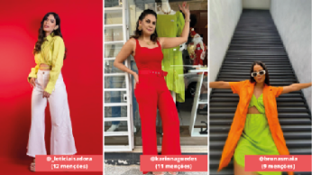 Com relação aos atributos de consumo, este grupo apresentou mais possibilidade de consumo em lojas físicas, com um leve apontamento para brechós. Os indivíduos que compõem o terceiro grupo demonstram maior possibilidade de consumo, apontando que estariam dispostos a gastar em uma peça de Moda entre R$50,00 e R$120,00. Este terceiro cluster demonstrou indicativo de influência acerca de influenciadores digitais locais como Letícia Isadora (12 menções), Karina Guedes (11 menções) e Bruna Maia (9 menções) (Figura 3).