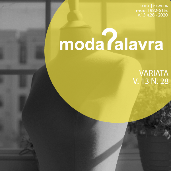 Capa da Modapalavra, edição Variata, V.13, N.28 (2020). Manequim em preto e branco. No canto superior direito, círculo amarelo com o logotipo da revista Modapalavra com um ponto de interrogação estilizado como letra p.